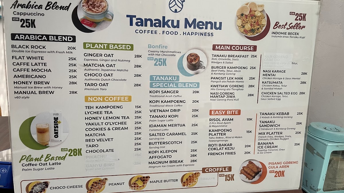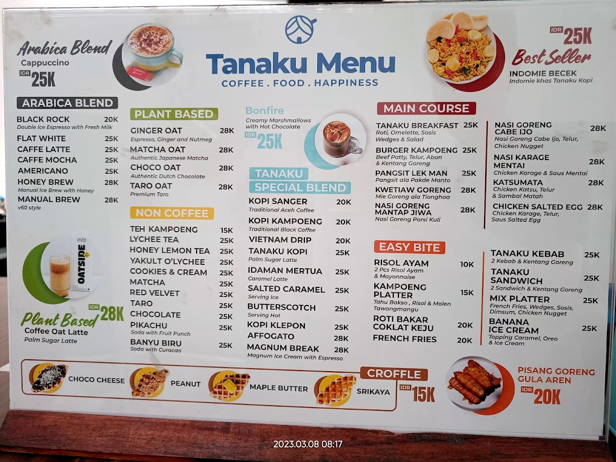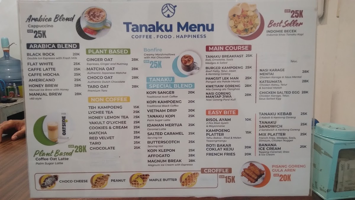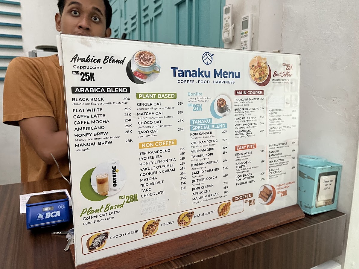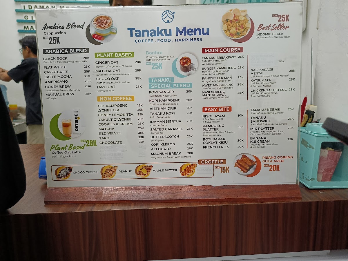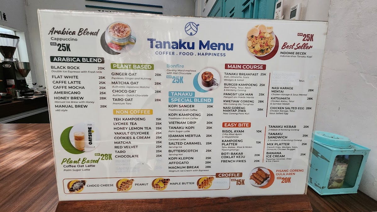 Whether you're enjoying the outdoor view at dawn or cozying up indoors, Tanaku Kopi creates an atmosphere that’s both relaxed and inspiring. A perfect escape for coffee lovers!